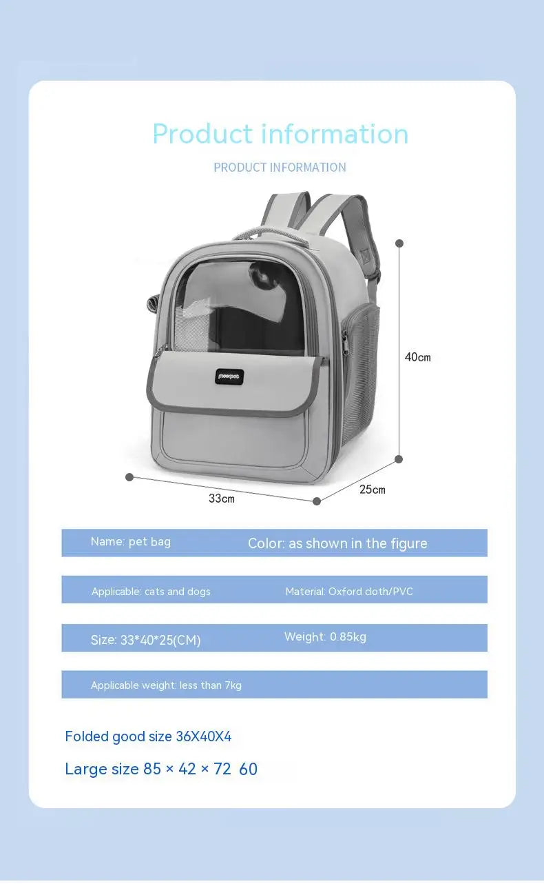 Sac à dos de transport pour animaux de compagnie, sac de voyage pour animaux de compagnie, Portable, respirant, pour chien, Transparent, grand espace
